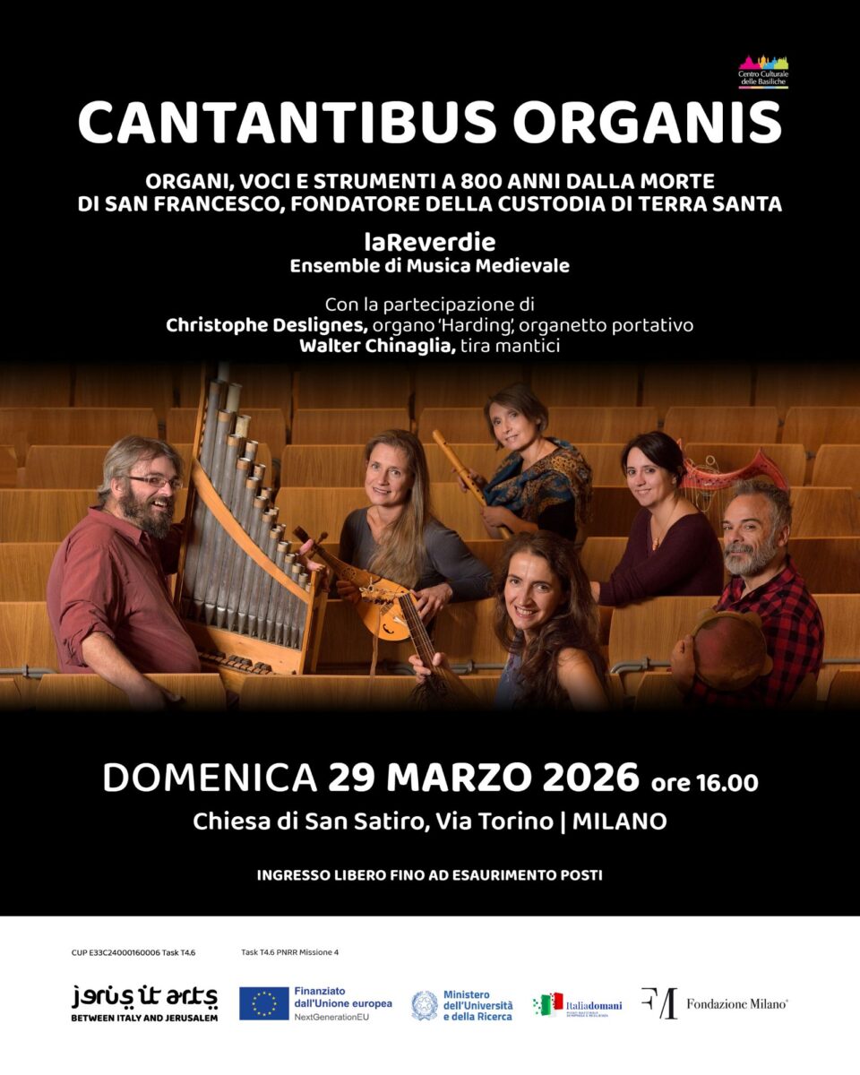 The final concert of the Festival, on 29 March, Cantantibus Organis – organ, voices and instruments 800 years after the death of Saint Francis, founder of the Custody of the Holy Land, will take place again at San Satiro. It is curated by laReverdie, the renowned medieval music ensemble, with the participation of Christophe Deslignes and Walter Chinaglia.